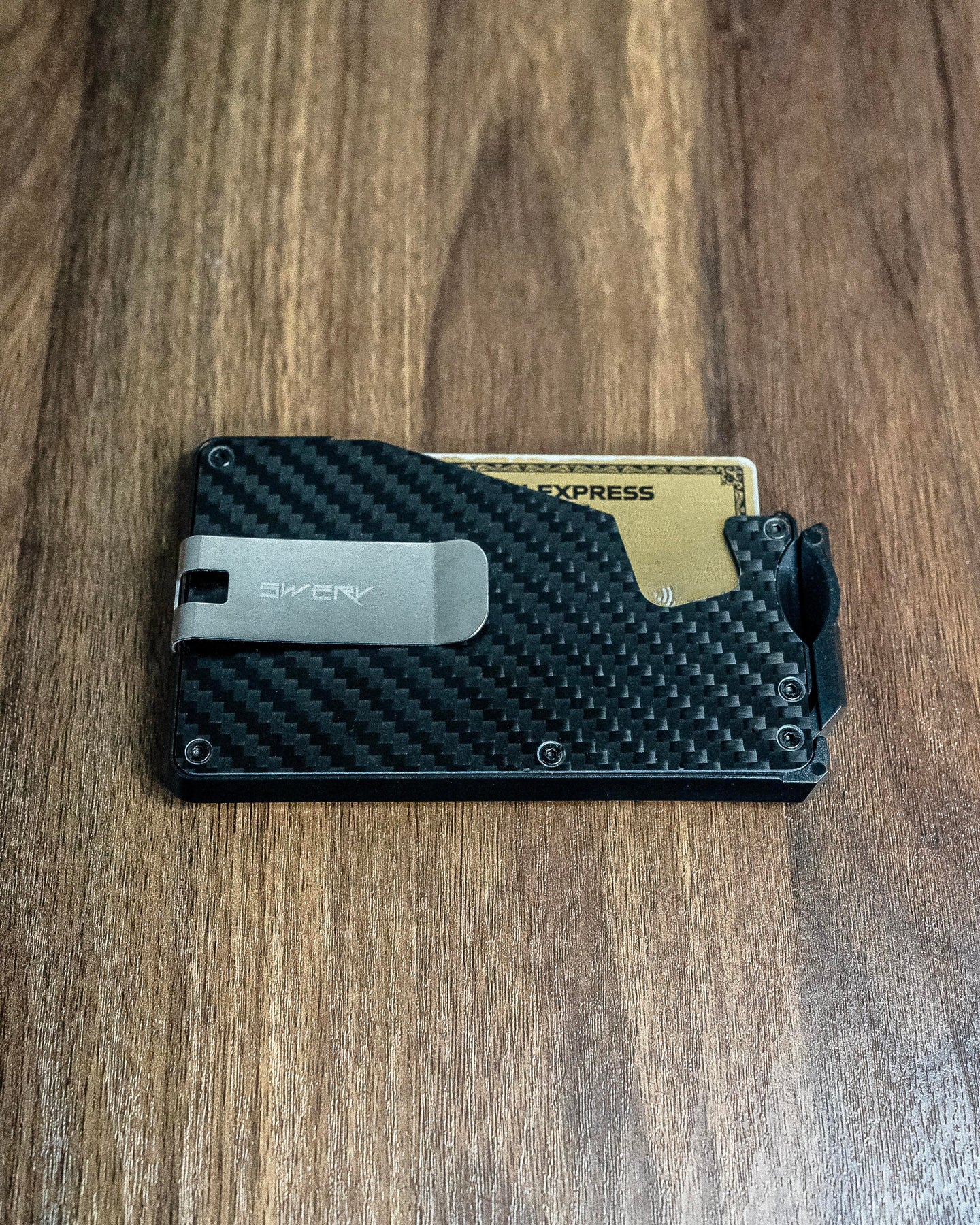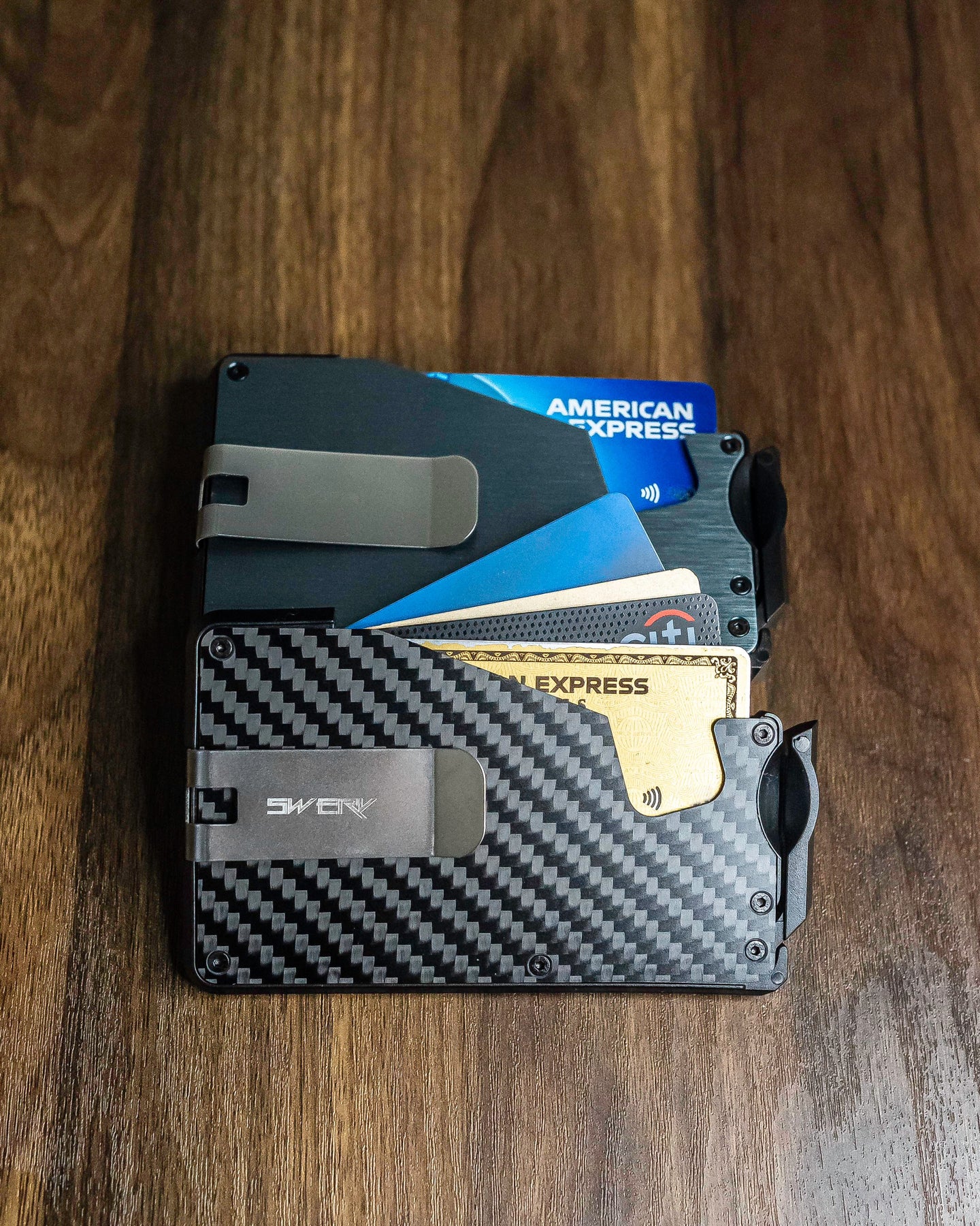 Premium design and construction, Each wallet is machined from a solid sheet of aluminum or carbon fiber and finished with a UV coating for durability performance.